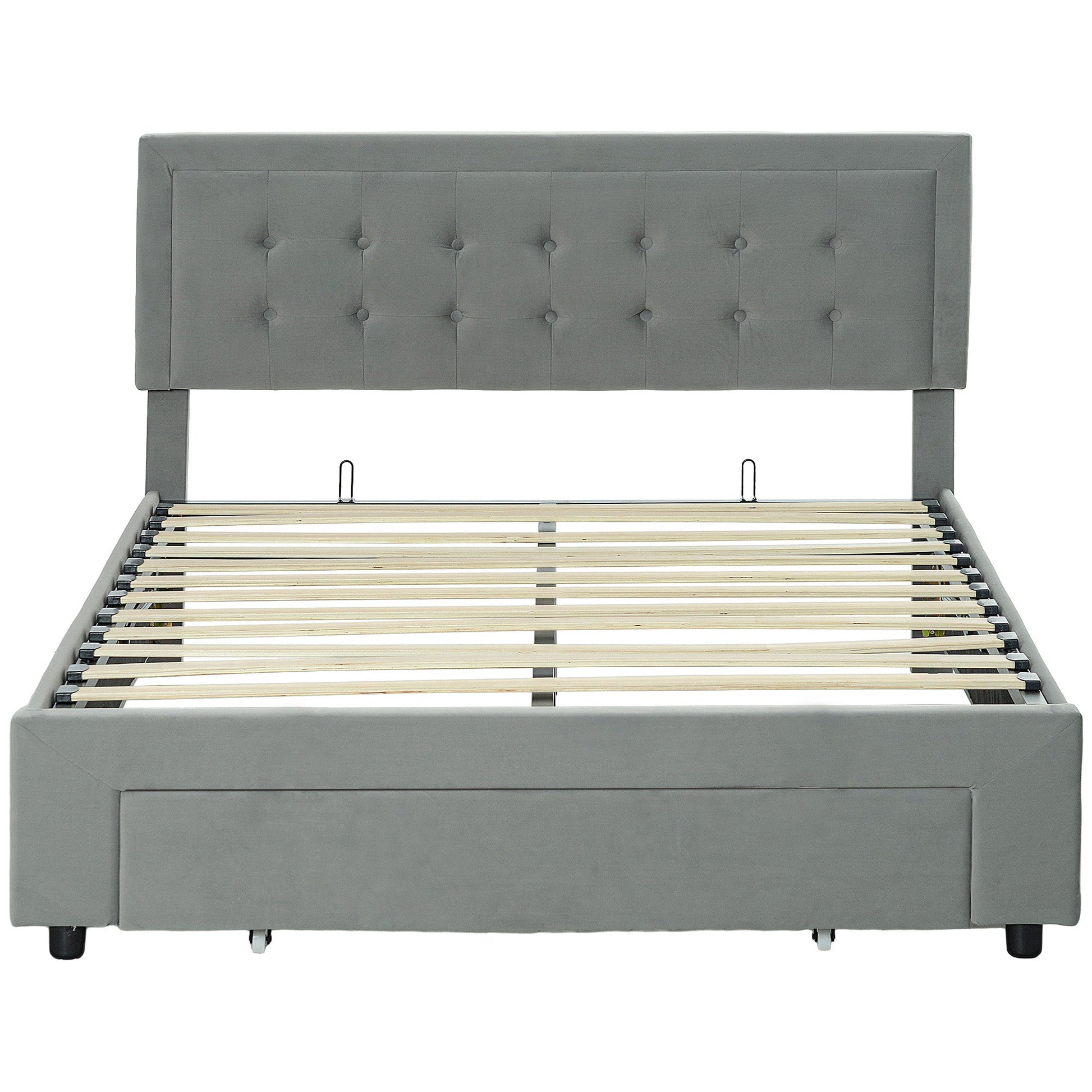 Double Size Ottoman Bed Frame with Front Drawer - Grey